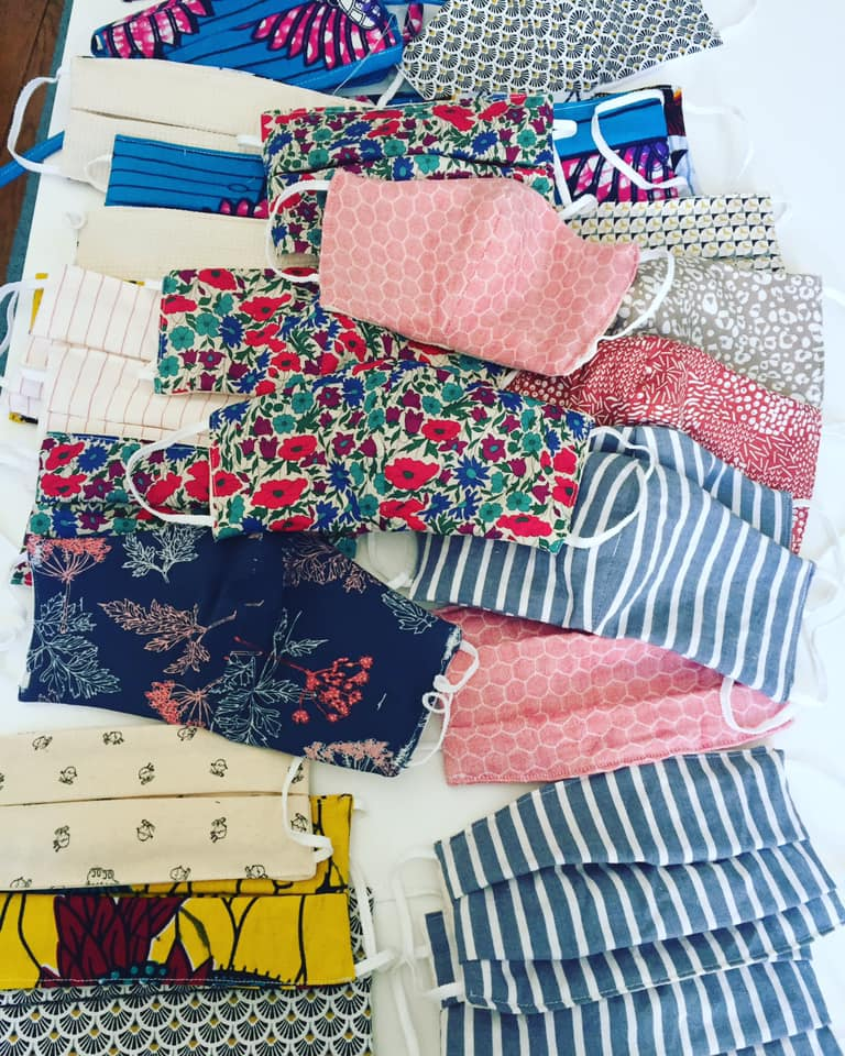 Photo : les quelques masques faits pour mes proches avec ce qu'il me restait de tissu !